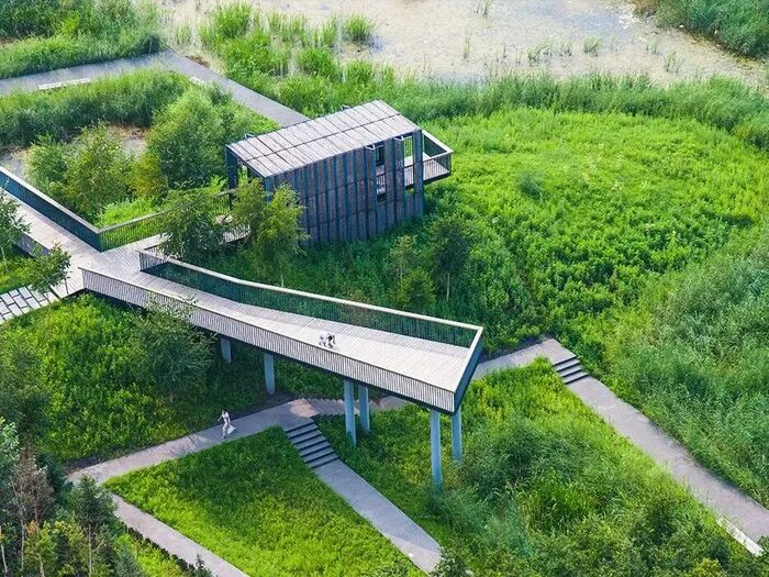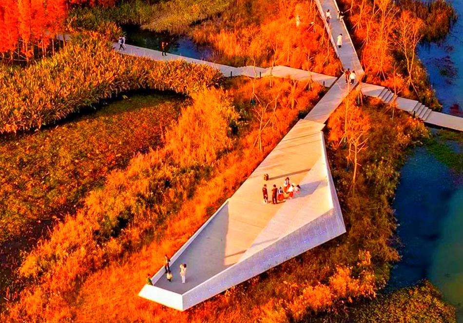 哈尔滨群力国家城市湿地公园(俞孔坚团队将一块面临消失的湿地转化为34公顷的雨洪公园。这个项目成功解决了新城区的雨洪排放和滞留问题。)